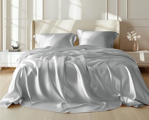 Buy Lanest Housing Silk Satin Sheets, King Size Satin Bed Sheet Set with Deep Pockets, Cooling Soft and Hypoallergenic Satin Sheets King – Light Gray: Sheet & Pillowcase Sets – ✓ FREE DELIVERY possible on eligible purchases