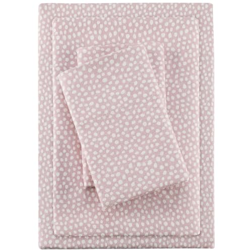 True North by Sleep Philosophy Cozy Flannel Warm 100% Cotton Sheet – Novelty Print Animals Stars Cute Ultra Soft Cold Weather Bedding Set, Twin, Blush Dots 3 Piece